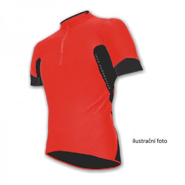 100%Coolmax®, konstruován na základě dlouhodobé ergonomické studie cyklisty v pracovní poloze, zadní část dresu je výrazně prodloužena, rukávy jsou mírně předtočeny, přední oblast zúžena, v podpaží elastická síťovina k odvětrávání, na zadním díle kaps.