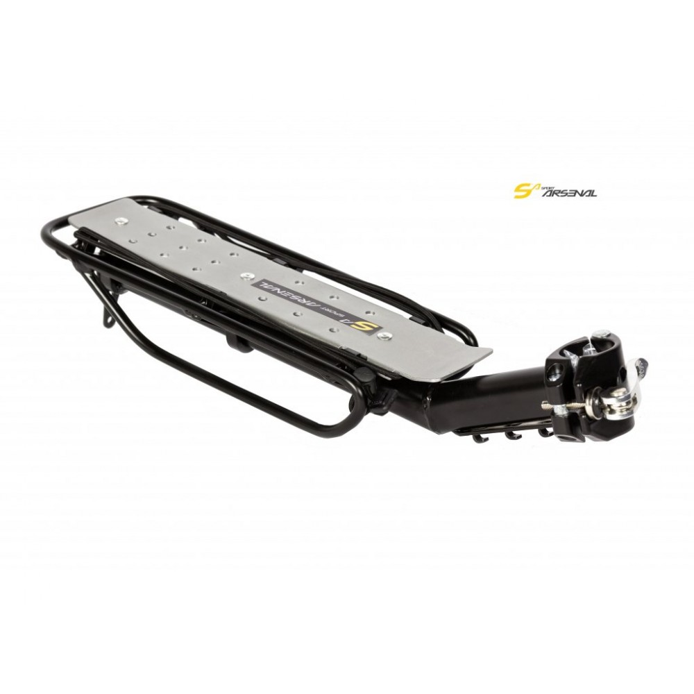 Hliníkový nosič na sedlovku pro převoz lehčích nákladů je ideální v případech, kdy nelze připevnit standardní nosiče, např. celoodpružená kola, kola s atypickou zadní stavbou, nebo modely bez návarků a závitů pro zadní nosič. Tělo nosiče je svařené z trubky a dělené objímky z hliníkové slitiny AW 6061