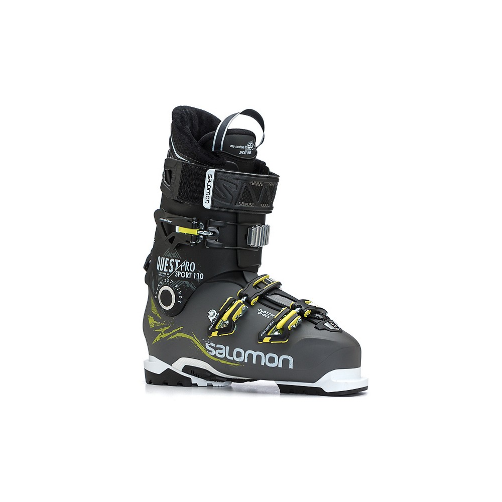 The Salomon Quest Pro CS Sport is an excellent option for the solid intermediate skier who wants a perfect fit in a boot that is easy to walk in. Salomon's 360 Degree Custom Shell allows an Authorized Salomon Dealer to heat the boot in a special oven. Once the boot is hot enough it is placed on your foot. When the shell starts to cool, it can mold to adapt to the shape of your foot. The Ride and Hike Technology has a lever located on the rear spine of the boot that when flipped up offers you an easy stride for walking your way to the chairlift in the morning. The 24mm Oversized Pivot adds a beefy connection between the upper cuff and the lower shell that drives energy right to your skis. Salomon's My Custom Fit 3D Performance Liner has heat moldable material in the heel and ankle pocket that offers even more customization.